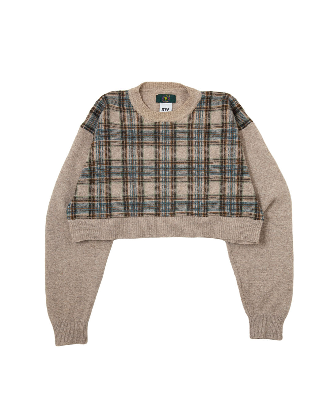 Cropped Plaid Panel Knit Sweater